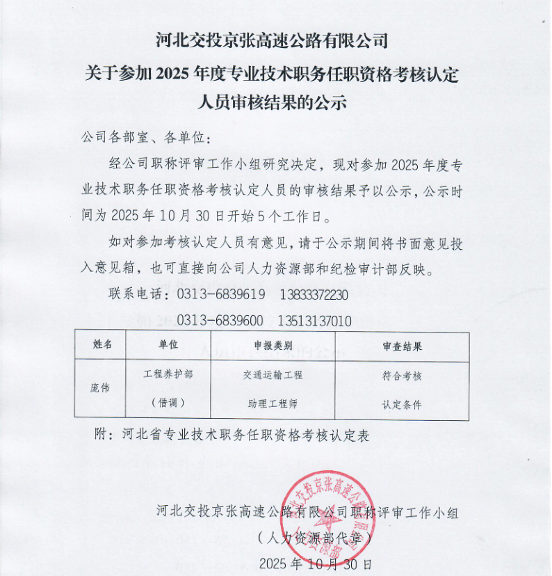 關于參加2025年度專業(yè)技術職務任職資格考核認定人員審核結(jié)果的公示